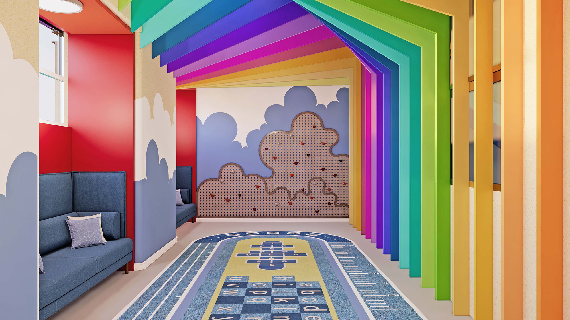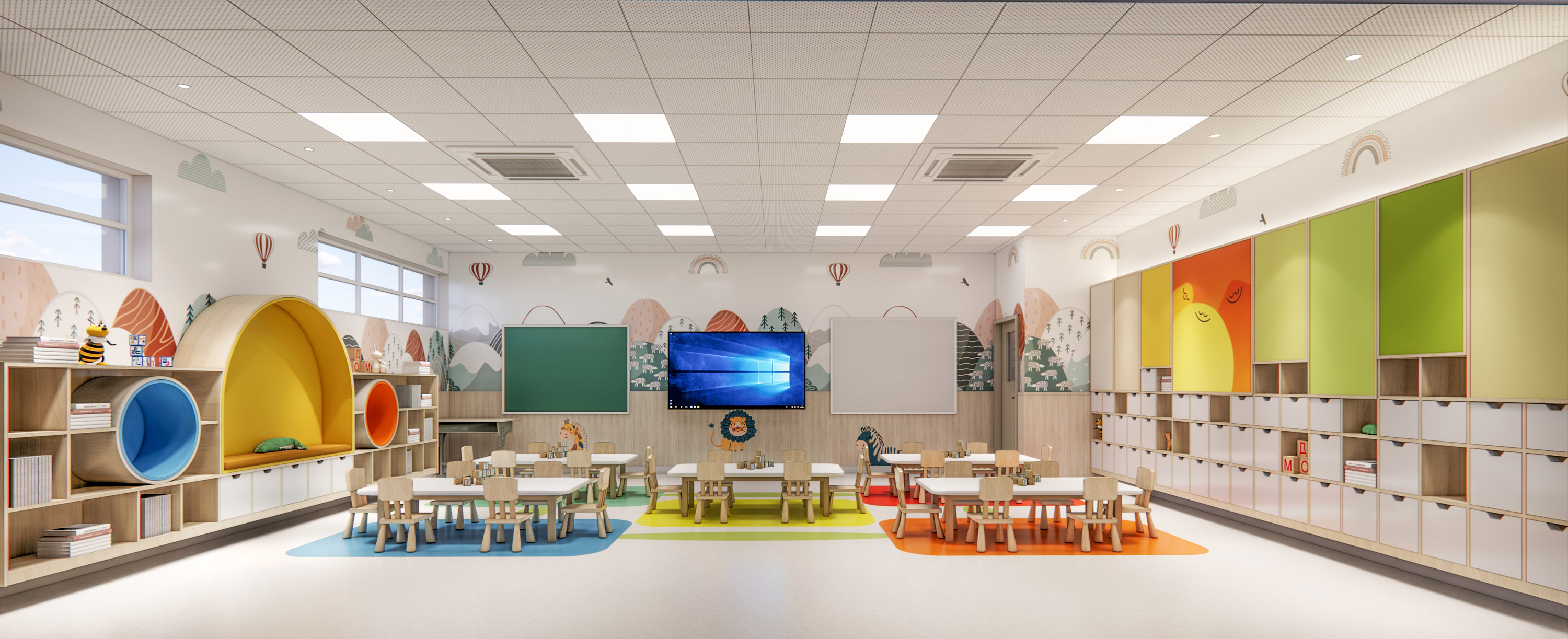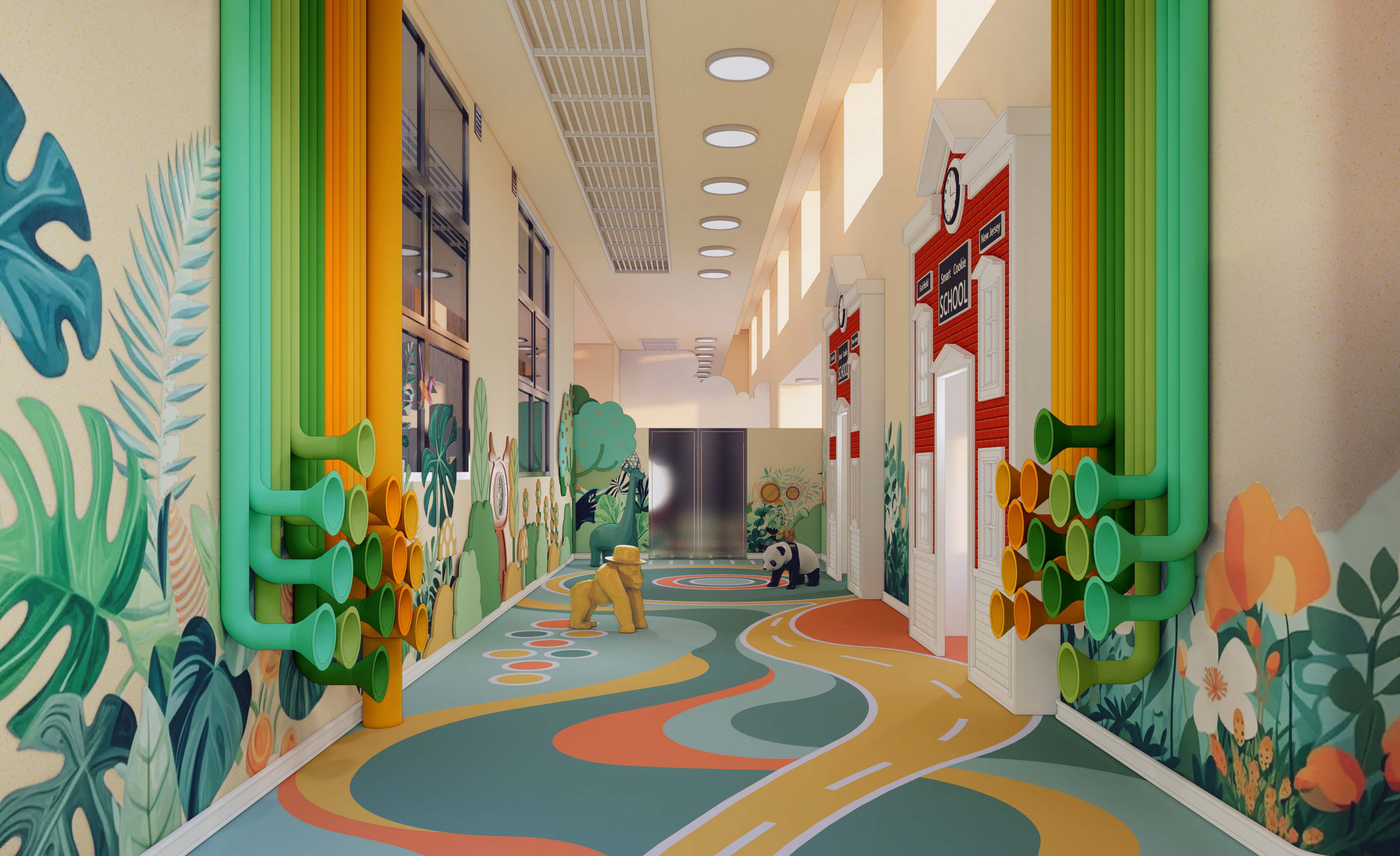 学校占地面积近三千平方米,建筑面积一万多平方米。校舍宁静、整洁、舒适,设计完善,设有整套多媒体教学系统、设备齐全的基础教学实验室、专业教学实验室、实习工场及小组教学室。建有礼堂、图书馆、医务室、陶艺室、生态园、科技园、厨房、健身室、两个室外篮球场及宽阔的休憩场地。本次设计区域为小学部及幼儿园部分,含大堂、礼堂、教室、办公室等室内设计,以及操场、门头招牌室外设计。